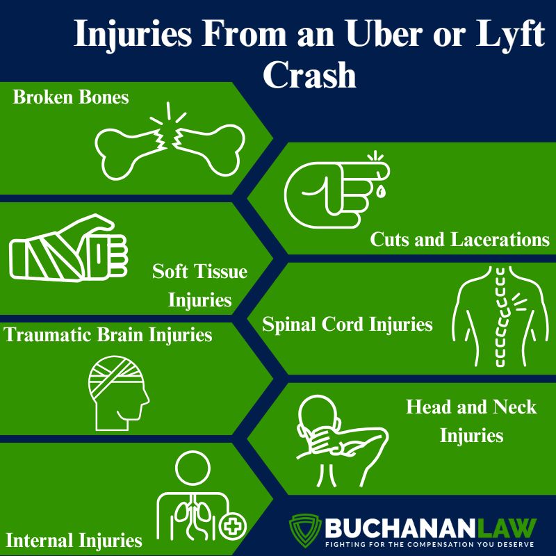 You may suffer the following types of injuries in an Uber or Lyft crash: